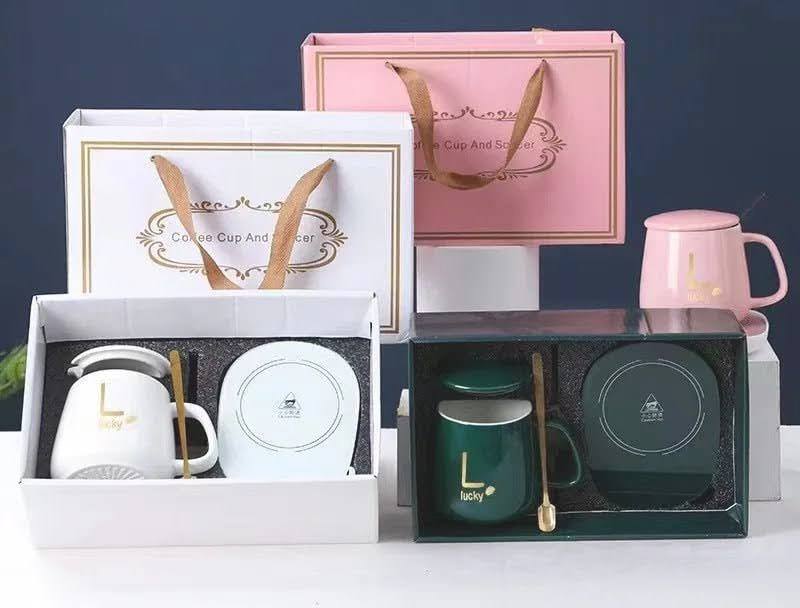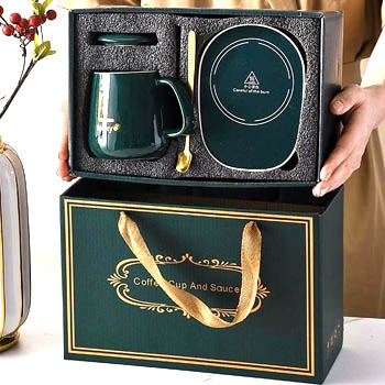 Чашка керамічна з підставкою - підігрівом та ложечкою в подарунковій упаковці